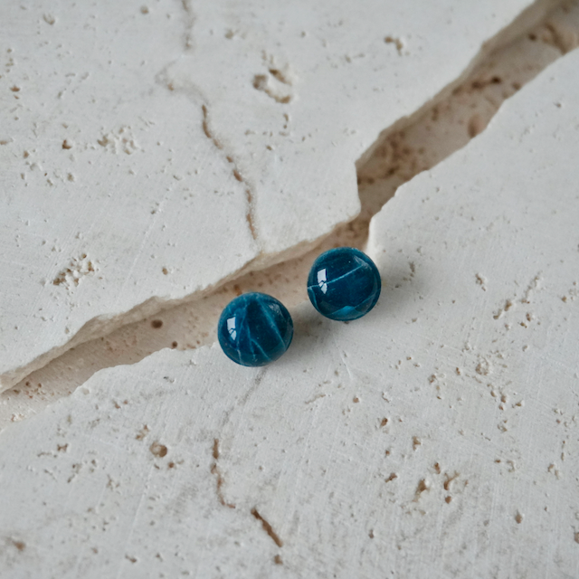 All of our jewellery is crafted by hand, so each has a unique finish making them one-of-a-kind pieces. The colour in the earring glows with vibrancy when the sun hits them.
