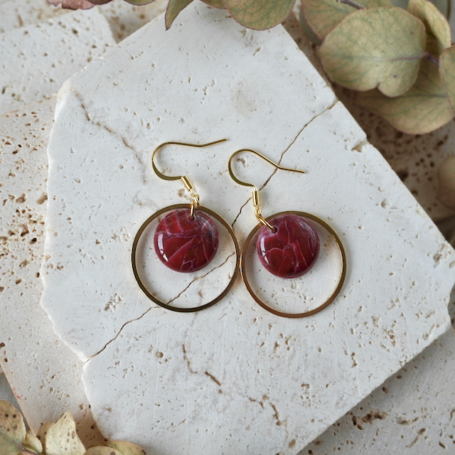 The creative process to craft the unique colour and stone like effect involves a mixture of translucent polymer clay, combined with an array of inks and metal leaf in such a way that achieves a one-of-a-kind finish. To complete the process, it is topped with a transparent resin to really highlight the colour and sparkle!