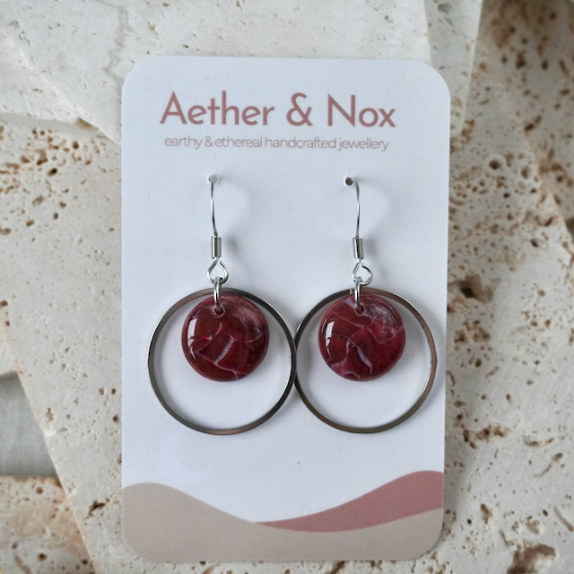 Materials - Polymer clay, clear UV resin and stainless steel fixings with optional rubber backs. These earrings will be provided on an Aether & Nox branded backing card
