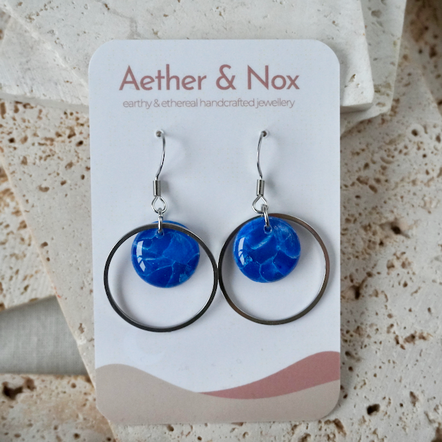 Materials - Polymer clay, clear UV resin and stainless steel fixings with optional rubber backs. These earrings will be provided on an Aether & Nox branded backing card