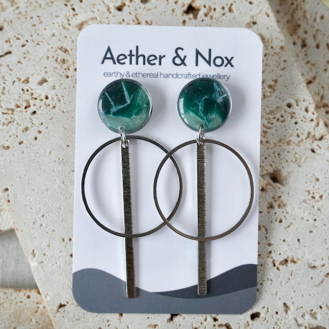 Materials - Polymer clay, clear UV resin and stainless steel fixings with optional rubber backs. These earrings will be provided on an Aether & Nox branded backing card